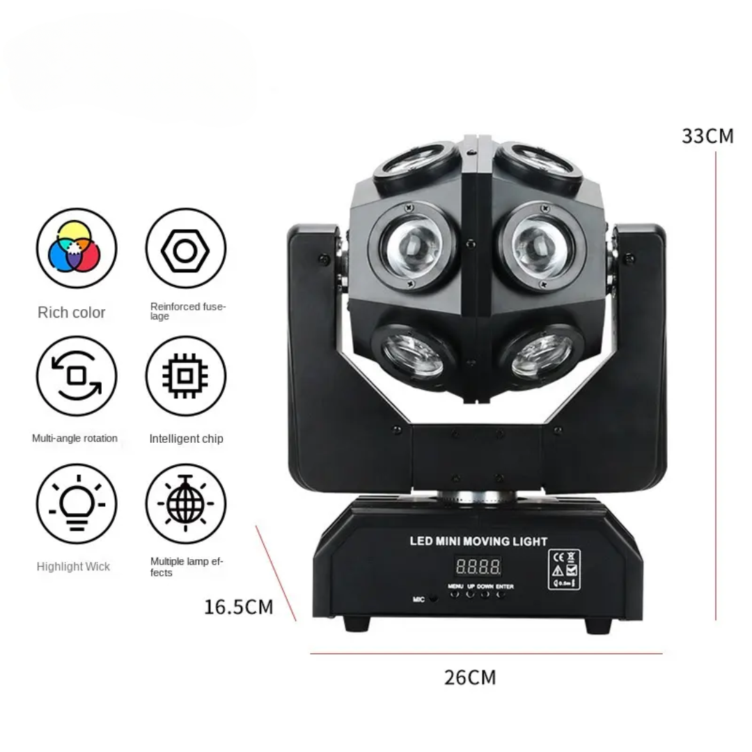 Enhance your stage lighting with the 4 Head Sweeper Beam Moving Light featuring high-intensity 60W RGBW LEDs and a stunning LED ring effect. Designed for DJs, discos, home parties, and small shows, this dynamic moving head light offers ultra-smooth 0-100% dimming, multiple operation modes (DMX512, Sound, Auto, Master-Slave), and wide-angle sweeping beams. Its compact yet powerful design ensures brilliant performance, making it perfect for nightclubs, events, and professional stage productions. CE & RoHS certified for safety and reliability.