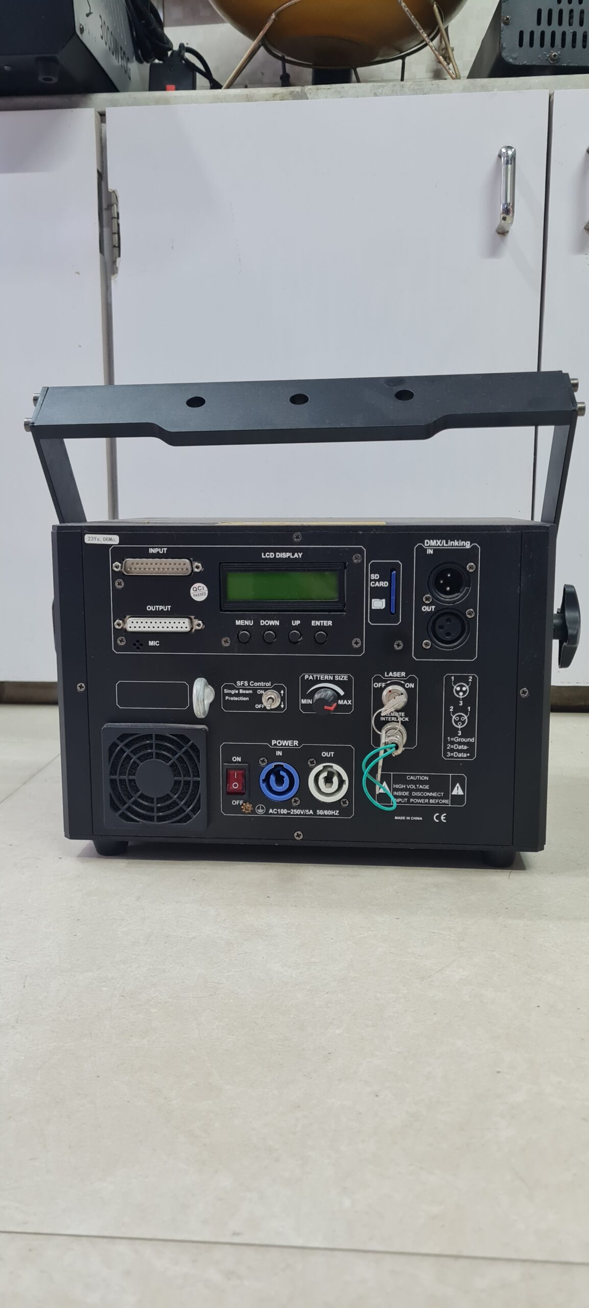 20W RGB Animation Laser Light – Elevate Your Concerts with Stunning Visuals! Create breathtaking light shows with the 20W RGB Animation Laser Light, designed specifically for large-scale concerts and events. This high-powered laser features a robust 21W configuration with RGB beams (R: 6000mW, G: 7000mW, B: 8000mW), delivering brilliant and vibrant visuals that captivate audiences. Equipped with a high-speed ILDA scanner (50Kppc ±30°), the laser provides smooth animations and patterns for professional-grade performance. With multiple control modes—Sound, Automatic, DMX512, ILDA, Master-Slave, and FB4—this laser offers ultimate flexibility and creative freedom. Its durable and compact design makes it easy to set up for concerts, festivals, and high-energy stage productions.