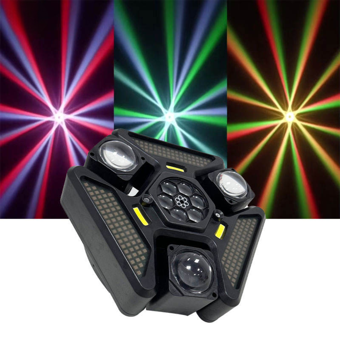 The Disco Lights Party LED 360° Rotating Three-Arm RGBW Stage Light is a high-performance, multi-effect lighting fixture designed for professional stage, DJ, club, wedding, and event applications. This advanced unit integrates moving head beam effects, laser projection, strobe lighting, and pixel RGB effects into a single compact system.