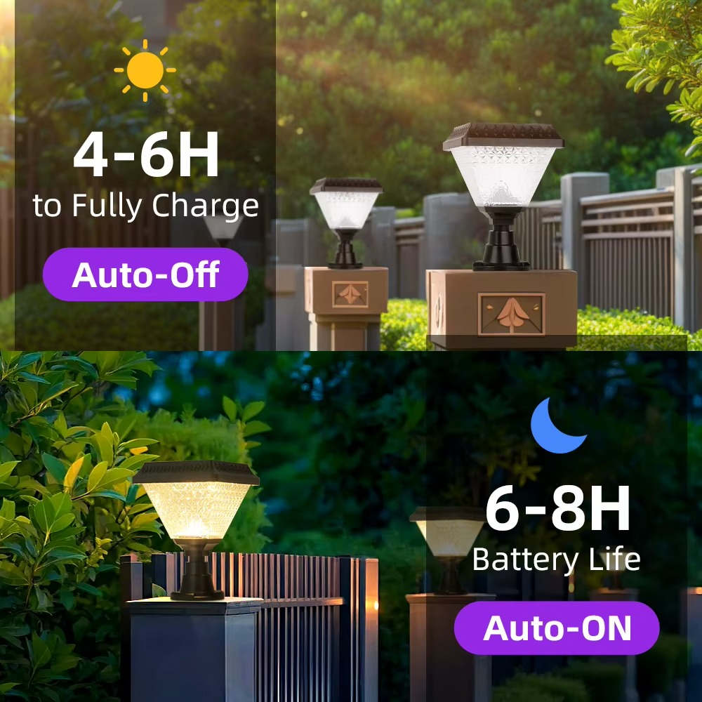 Built with durable and thickened material, this solar post light is waterproof and designed to withstand outdoor weather conditions such as rain, heat, and dust. Its strong build ensures long-lasting performance and reliability.