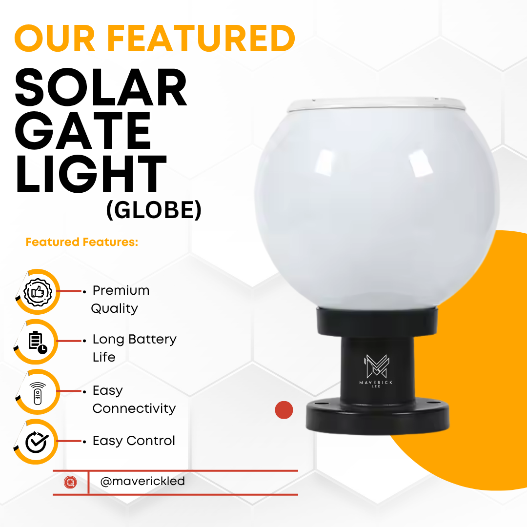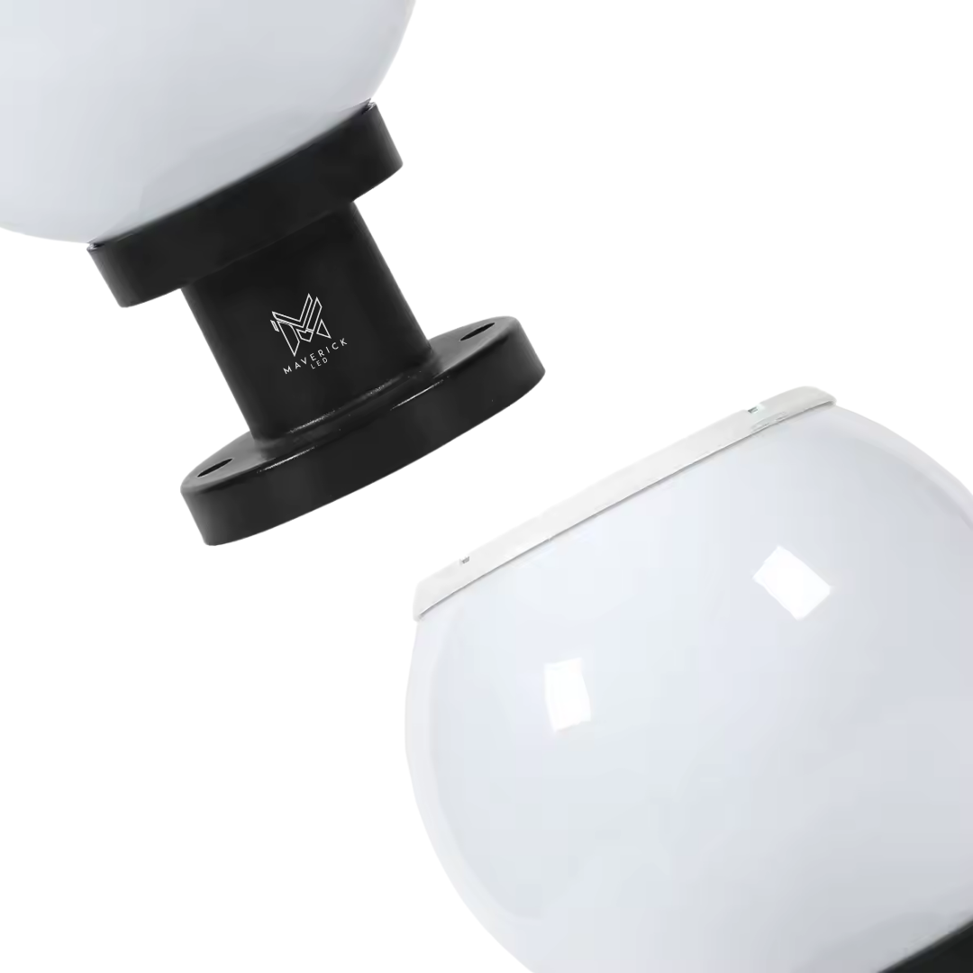 Maverick LED Solar Globe Light – Round Post Top Light | Flat Base | IP65 Waterproof | 6000K Daylight | Solar Powered Pillar Lamp for Gates, Gardens & Compound Walls